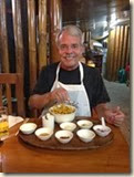 You get tons of things to spice up the Khao Soy – shallots, lemon, pickled cabbage, hot chilis, fish sauce – and stuff to calm it down – sugar, coconut milk, bananas. It’s fun doctoring it up to make it to your liking! Plus they give you an apron so you don’t mess up your clothes slurping down your concoction. Fun!