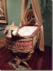 There are baptism pitchers and strange altar looking sculptures, gold roses, jewelry, the largest bowl ever cut out of a single quartz stone, and of course more crowns, but also the box in which the crown is placed when not being worn. That’s pretty neat.