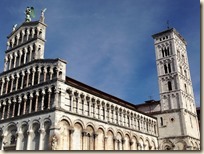 It’s after noon now and we’re getting hungry, so we head down the mountain and into Lucca, where we stop at our favorite restaurant – Lucca a Tavola. We’re greeted like family – Michael (probably more like Michele) tells us he remembers us and proceeds to prepare special dishes for us. Pulpo salad for Ed and veal with Prosciutto for me. Yummy!