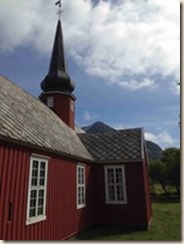 More windy narrow roads lead into Ballstad, past houses and communities and this great wooden church.
